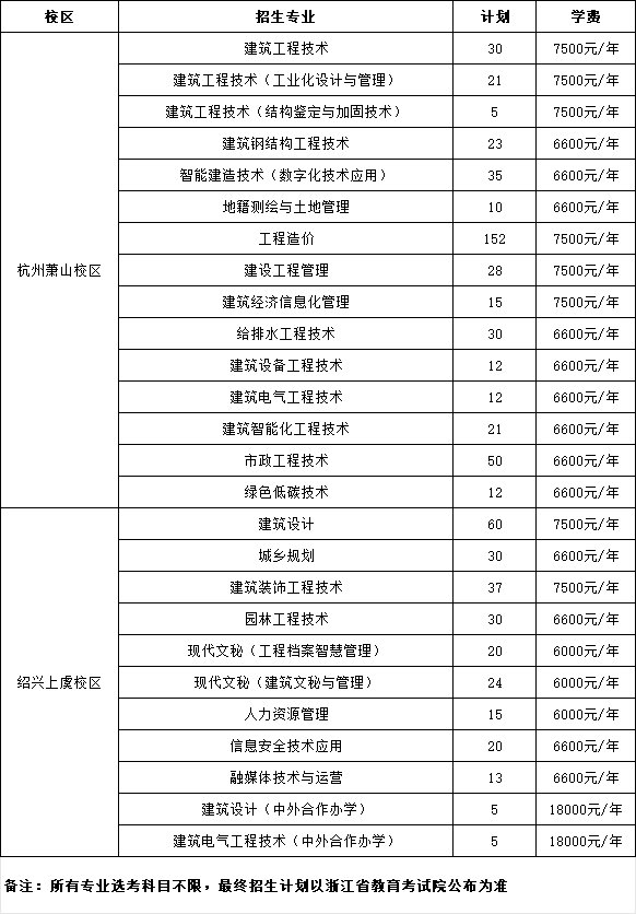 浙江建设职业技术学院2024年浙江省普通高考招生计划.xlsx