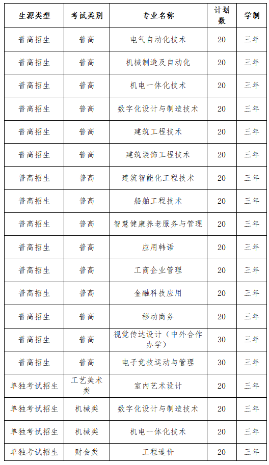 第八条嘉兴南洋职业技术学院2023年高职提前招生计划共计400名,其中面向普高招生考生320名,面向单独考试招生考生80名。具体招生专业及计划数如下:
