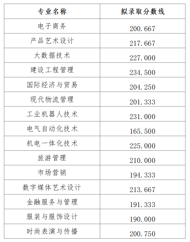 根据《浙江省教育厅浙江省发展和改革委员会关于下达 2021年浙江省中高职一体化五年制职业教育招生计划的通知》浙教规〔2021〕6号、《义乌工商职业技术学院2024级中高职一体化五年制职业教育转段升学考试工作方案》义工商院〔2023〕28号文件精神,经学校招生工作领导小组审议通过,现将2024级中高职一体化五年制职业教育转段升学拟录取分数线公布如下: