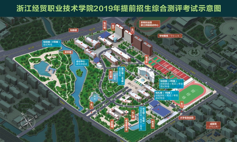 考场分布详见浙江经贸职业技术学院校园平面图(三维)