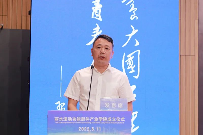 范寿仁在讲话中强调丽水滚动功能部件产业学院成立将为丽水教育高质量发展增添新的动能,并提了深化产教融合、坚持实践育人、弘扬工匠精神的发展方向。