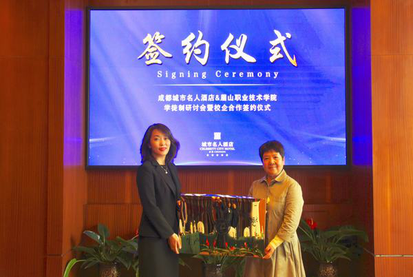 合作企业及项目:与全球知名的洲际酒店集团、万豪酒店集团;国内著名的城市名人酒店集团、北京眉州东坡集团、浙江新荣记酒店连锁集团等20余家知名企业建立了校企合作关系;2019年与城市名人酒店集团开设“名人学徒制班”。