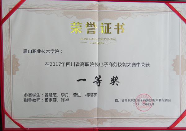 电子商务专业是我院重点新建专业之一,主要培养从事电子商务策划、网络营销等方面的基本技能和职业素质,胜任网络营销、国际(内)贸易、电子商务平台与网站设计等主要职业岗位的高素质技术技能型人才。近年来,电子商务专业学生参加四川省高职院校电商技能大赛分别获得三等奖1项、二等奖1项、一等奖1项。2017年参加博导杯四川省电商技能大赛一等奖,2016年参加奥派杯电子商务技能大赛一等奖。电子商务专业教师参加2017年四川省信息化教学设计比赛一等奖,同年获得全国信息化教学设计大赛三等奖;2018年四川省高职院校教师教学能力大赛教学设计获二等奖。