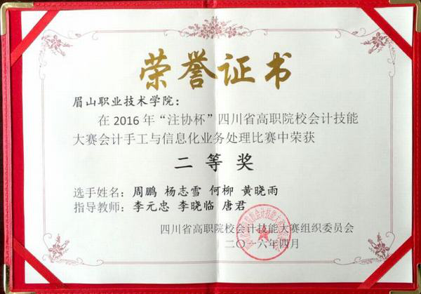 本专业是四川省高职院校示范建设专业,积极探索“课证融通,德技并重”人才培养模式改革,成效明显。本专业已经建成2门四川省精品资源共享课和1门院级精品资源共享课。2015年教师参加全国职业院校信息化教学设计比赛获三等奖,2018年参加四川省高职院校教师教学能力大赛教学设计获三等奖。2015年以来,学生参加“注协杯”四川省高职院校会计技能大赛连续四年获二等奖,其中, 2016年在49所参赛院中获第6名。? 2016年以来,本专业大二学生中近80%学生已考取会计从业资格证书和初级会计师证书。