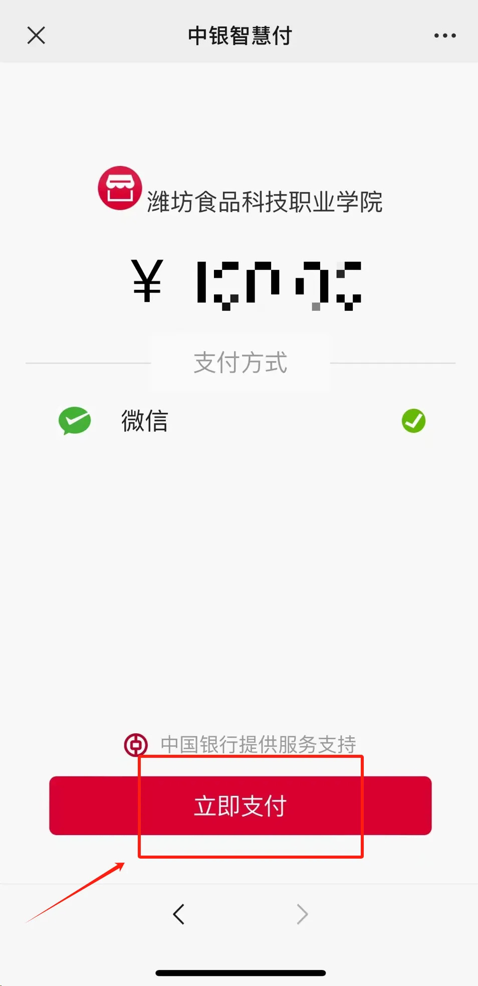 第三步,选择“微信付款”后,点击“立即支付”,完成缴费。