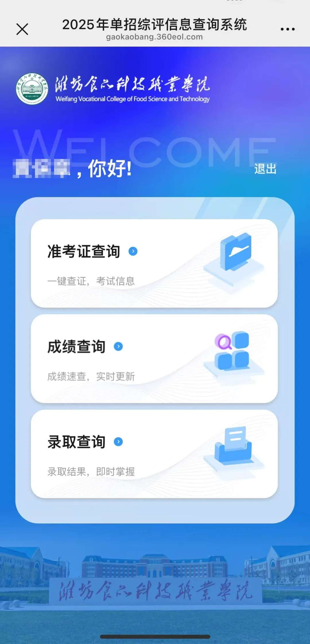 考生完成网上缴费后,可于2025年2月27日14:00后至考试前扫描下方二维码,登录我校2025年单招综评信息查询系统,自行打印准考证。(准考证上的考试时间、考试地点、考生须知等内容十分重要,请认真仔细阅读。)