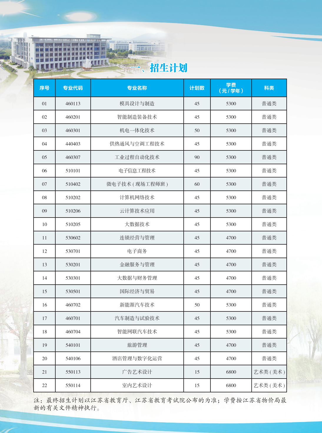 2025年无锡职业技术学院提前招生计划