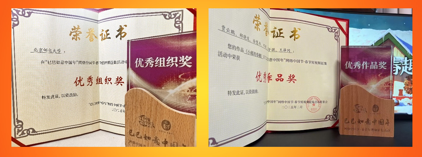 2月14日下午,“巳巳如意中国年”网络中国节・春节短视频征集活动分享交流会在京举办。本次征集活动由中央网信办网络社会工作局指导,北京市委网信办、光明网联合主办,历经14天征集、3.6万部作品参与、获得10.6亿阅读量,经专家评审及综合评议,评选出30件优秀作品、12家优秀组织单位和10家正能量传播机构。北京邮电大学选送的作品凭借独特创意与精彩呈现,赢得了专家和观众的一致认可,其中由数字媒体与设计艺术学院师生团队创作的AIGC动画作品《小邮的春趣》成功斩获“优秀作品奖”,北京邮电大学获得“优秀组织奖”。