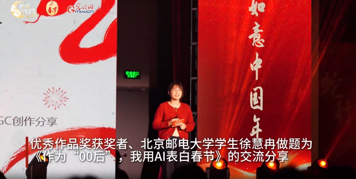 《小邮的春趣》通过生动有趣的动画形象和充满科技感的画面,将春节的传统习俗与现代生活紧密相连,让观众在感受春节浓厚氛围的同时,也领略到了科技为传统文化带来的新活力。数媒学院学生徐慧冉作为唯一的高校获奖代表,在交流会现场分享了创作体会和对中华传统节日文化的理解感悟。“技术需要文化的滋养,文化也因技术焕发新机。”在徐慧冉看来,作为“00后”,用AI“表白”春节习俗,不仅是在复现传统,更是在用现代科技对传统文化进行创新与再创作。她的分享引起了现场的强烈共鸣,也更加直观地展示了北京邮电大学发挥信息科技优势在文化传承与创新方面所作出的努力。《光明日报》、北京卫视等媒体,围绕青年学子在 AI 技术与传统文化融合上的积极探索等问题,对本次活动及北邮创作团队进行了采访报道。