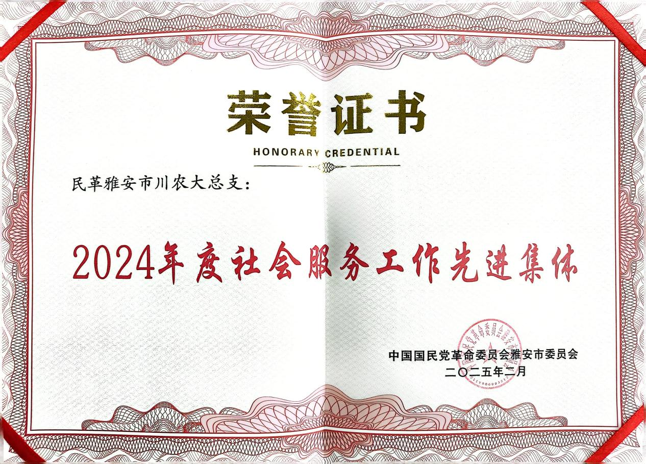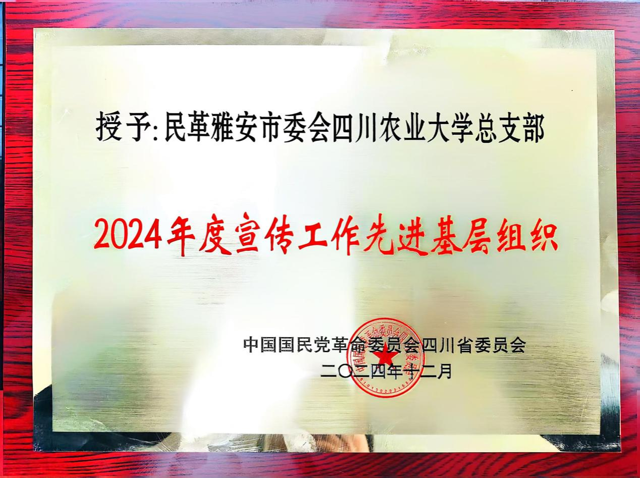 2024年,民革川农大总支在学校党委和民革雅安市委会的正确领导下,在学校党委统战部的关心指导下,各方面工作取得良好成效:据不完全统计,本年度总支党员累计以第一或通讯作者发表学术论文23篇(含SCI论文17篇)、授权专利5项、主持科研项目9项、主参编教材5部;担任省市区各级人大代表或政协委员的党员围绕地方经济社会发展中心工作及民生实事,提交各类提案议案11件(其中省部级10件)、社情民意3件;在农业科技推广、食品加工与安全等社会服务工作方面成果丰硕,民革党员、风景园林学院高素萍教授在世园会郫都分会场领衔建设“川花自主创新园”,研发的川花新品种“蓝角柱”在本次世园会以及成都市为主的公园、街道等空间得到应用,受到新华社、中国新闻网等多家权威媒体广泛报道。