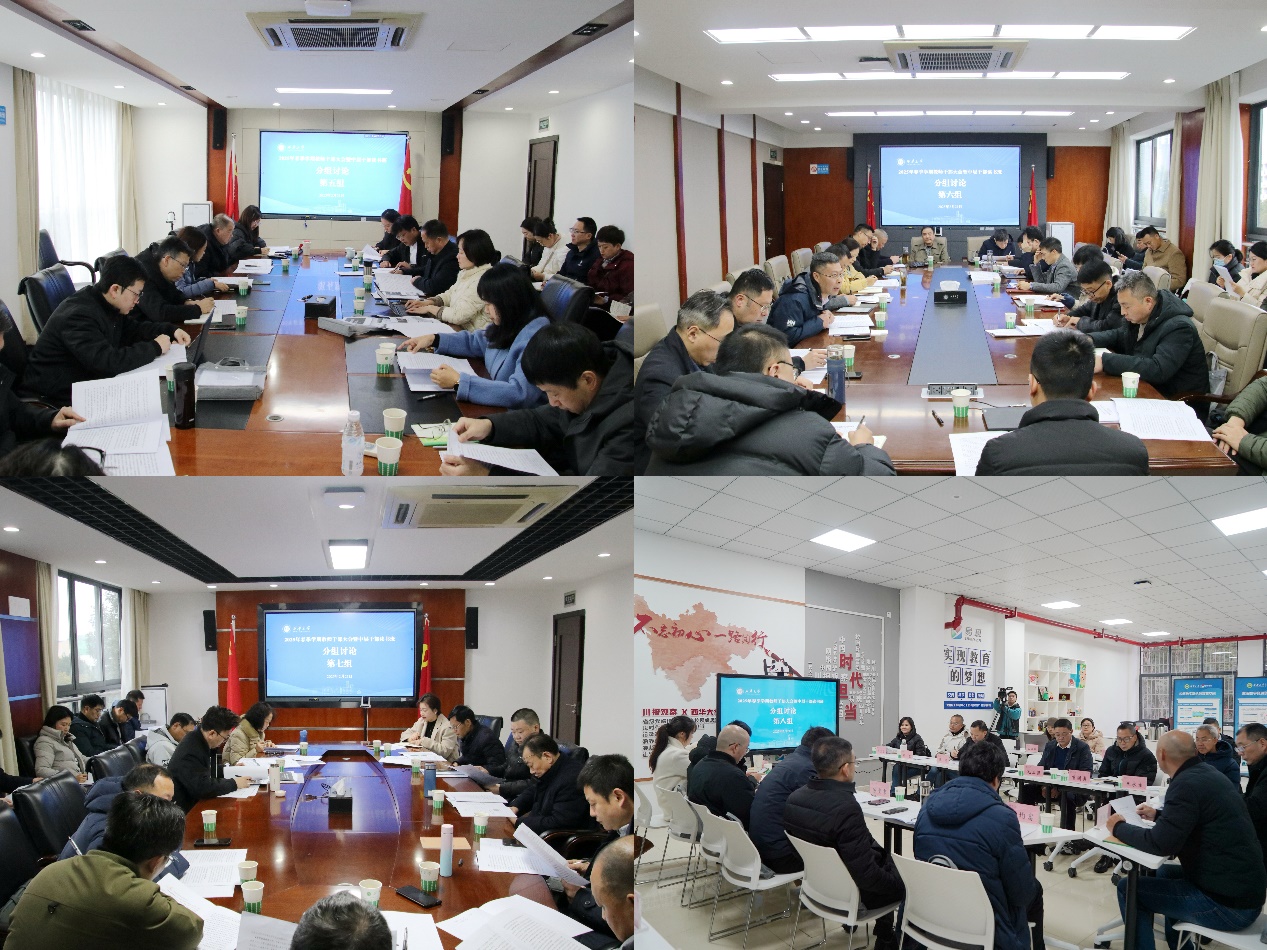 根据会议安排,参会人员分8个组开展讨论。大家聚焦学校高质量发展,结合李秋实校长主题报告、会前专题学习、专家辅导报告和2025年工作要点,交流心得、碰撞思想。与会教师干部踊跃发言,为学校高质量发展建言献策。