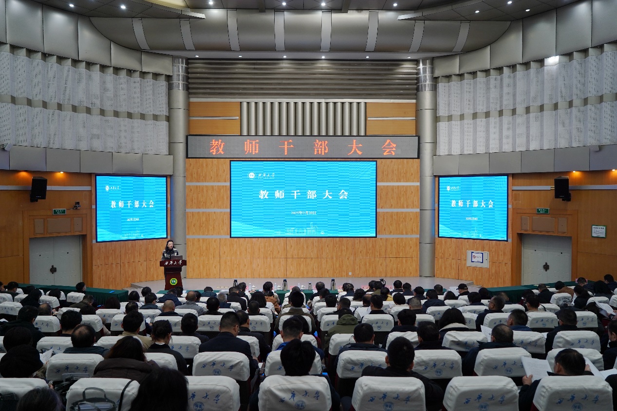 校长李秋实作题为“教育强国 西华何为——关于教育科技人才融合驱动下学科重构与组织变革的思考”的报告,并作新学期工作部署。