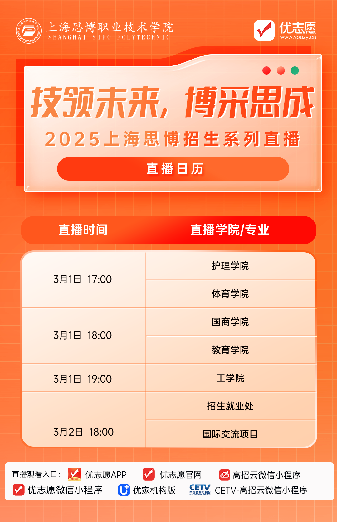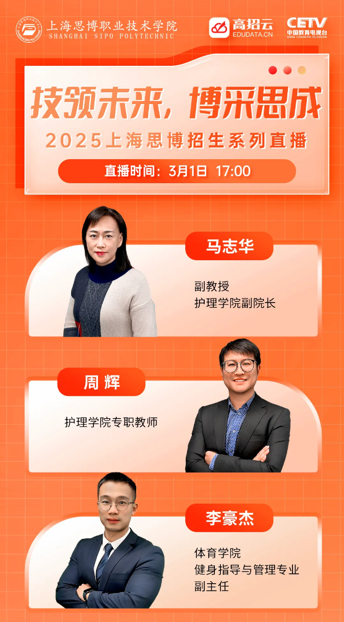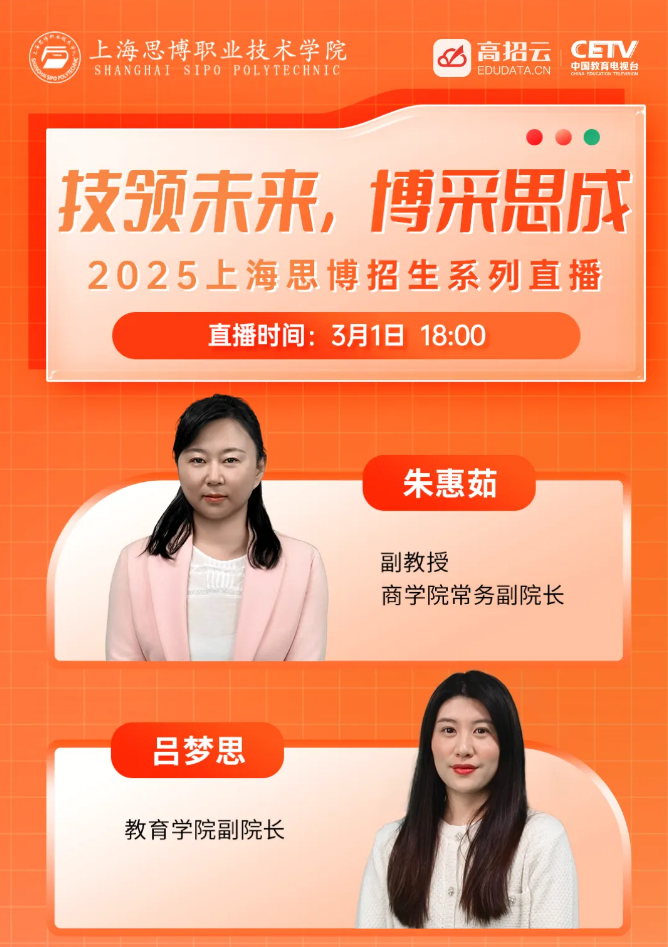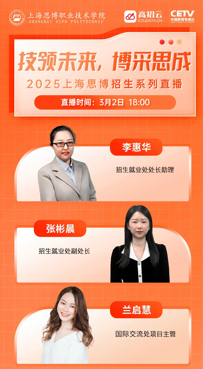 为了满足考生及家长更好地了解上海思博职业技术学院招生相关政策及专业,高招云联合上海思博职业技术学院招生办推出了上海思博职业技术学院2025年招生宣讲会。在宣讲会上,不仅能了解到上海思博职业技术学院的学校概况、办学特色,更能听到各学院大咖们对于专业最详尽的解读,直接对话学院专业教授,带你走进“最有温度”的上海思博职业技术学院!直播预告立即预约观看直播