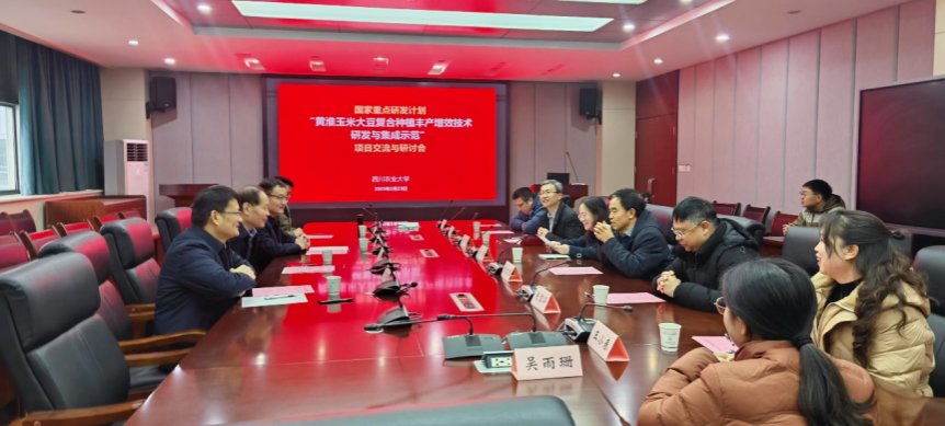 2月23日,国家重点研发计划“黄淮玉米大豆复合种植丰产增效技术研发与集成示范”项目交流与研讨会在成都校区2教201召开。国家重点研发计划项目咨询专家、河南师范大学李春喜教授,国家大豆玉米带状复合种植专家组组长杨文钰教授,国家重点研发计划项目首席、山东省德州市农业科学研究院李宗新院长,山东农业大学农学院张吉旺院长,中国农业大学胡一民博士以及我校农学院王静院长,农学院杨峰副院长,机电学院张黎骅副院长等参加了本次会议。会议由杨峰主持。