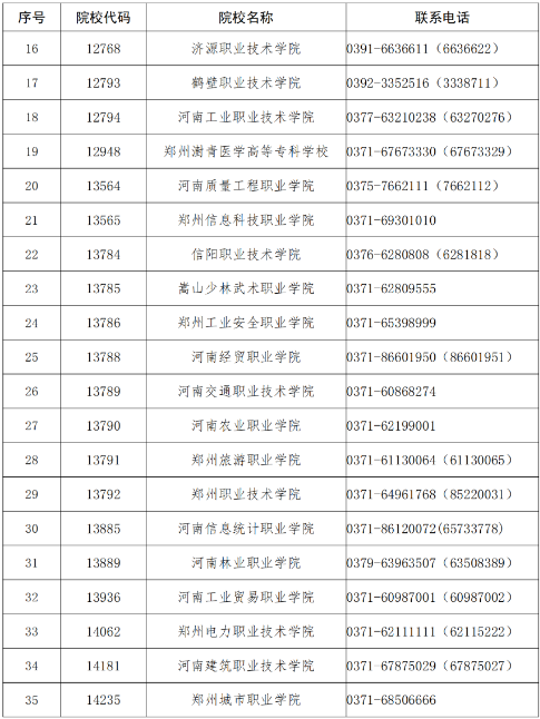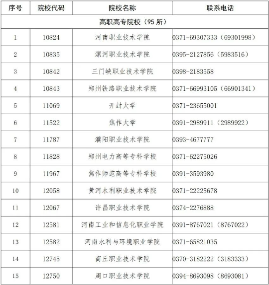 河南省2025年高职单招和技能拔尖人才免试入学招生院校名单