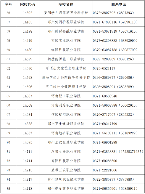 2.考生查询。考生可登录河南省教育考试院网站(http://www.haeea.cn)查询了解我省高职单招高校招生章程,也可通过高校官方网站或拨打高校招生咨询电话进行咨询,切勿通过非正规渠道查询了解高职单招信息,以防被误导、上当受骗。