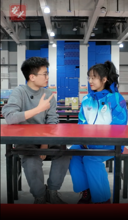 右一为我校学校亚冬会志愿者临时团支部副书记、家居学院硕士研究生刘顺凤