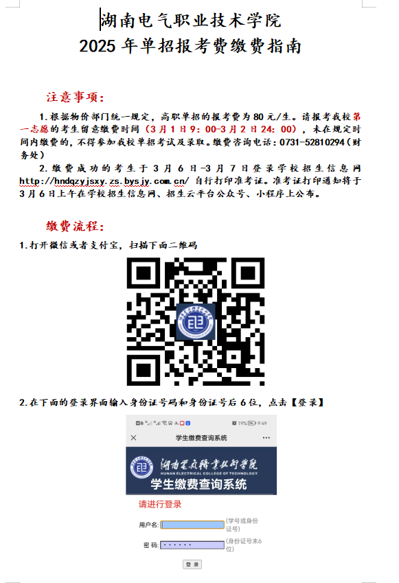 单招季|湖南电气职业技术学院2025年单招报考费缴费指南
