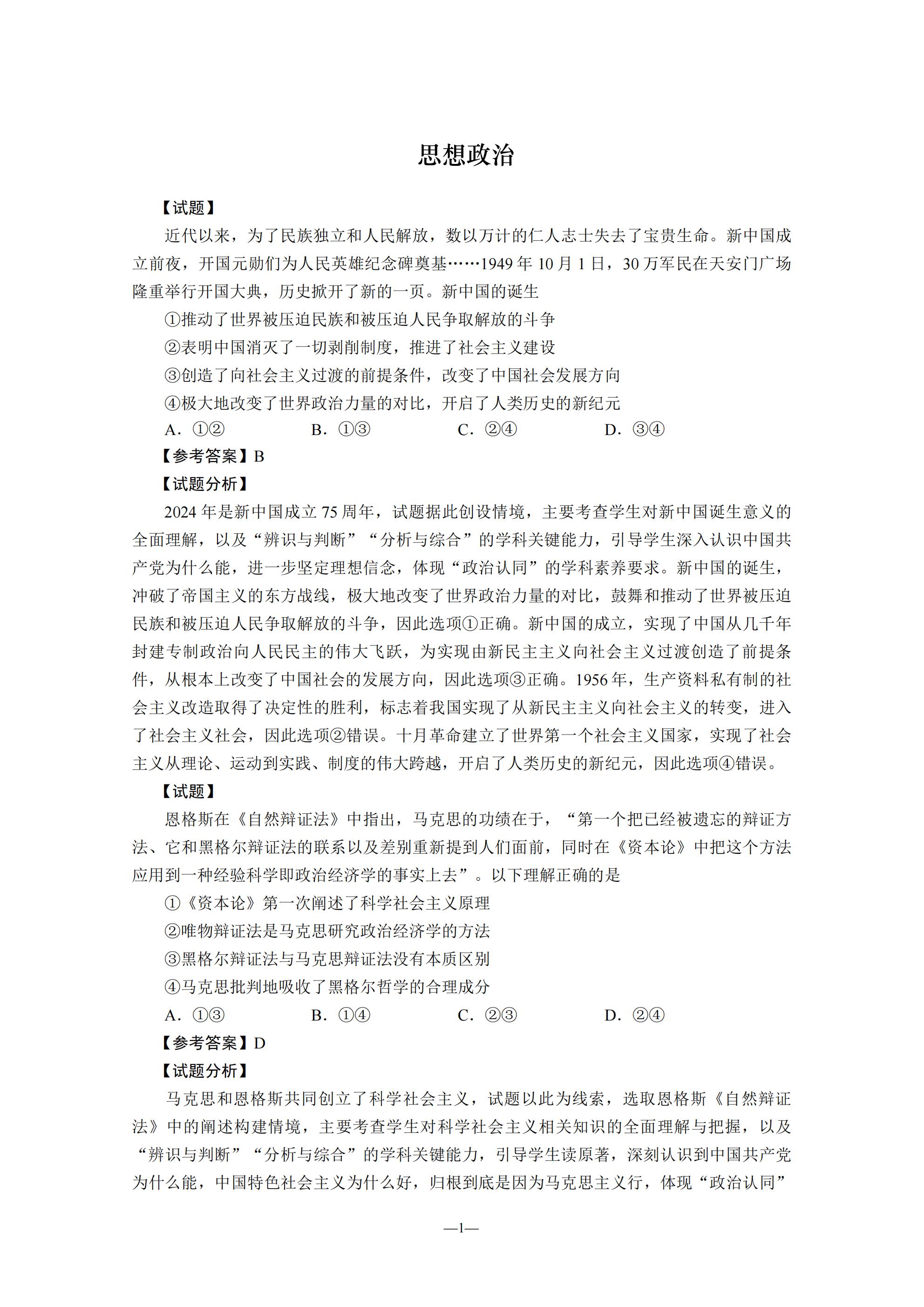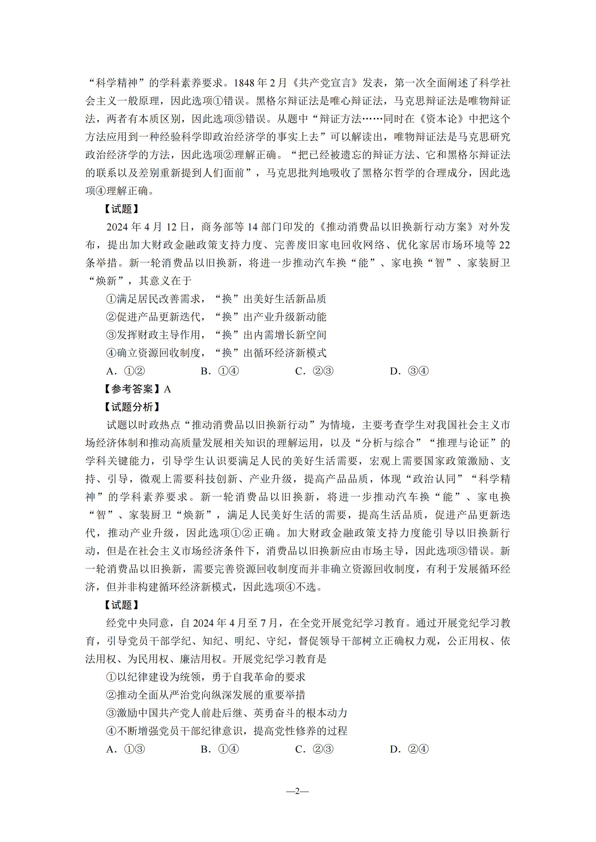 为进一步发挥普通高中学业水平选择考试题的育人功能和导向作用,帮助2025年参加高考的学生准确把握试题特点、有效复习备考,引领高中各学科教师进一步转变教学观念、提升课堂质量,湖南省教育考试院组织编写了《2024年湖南省普通高中学业水平选择性考试试题精选解析》,现印发给你们,请认真宣传并通知各高级中学。