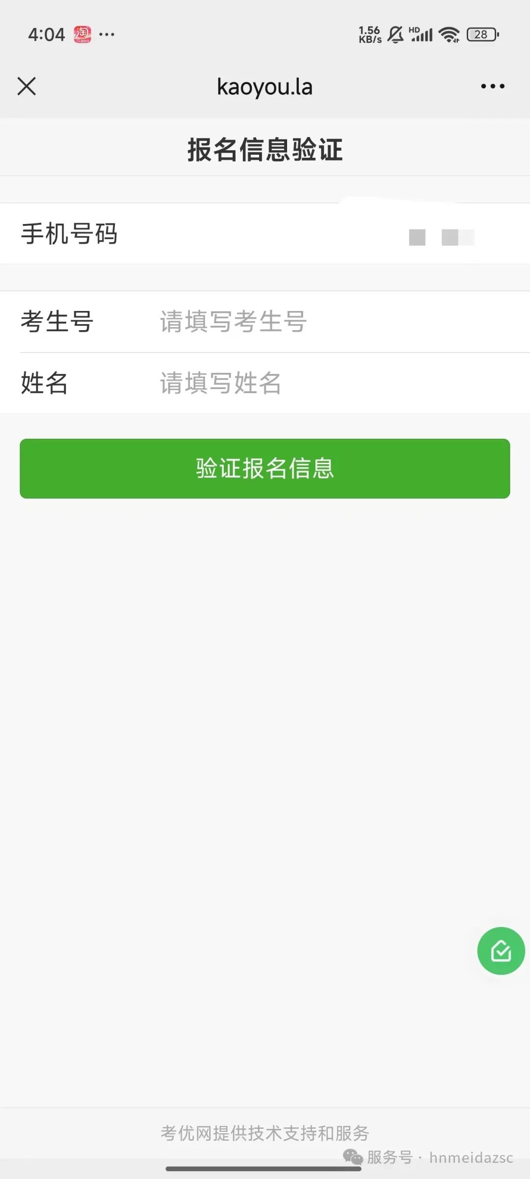 考生填写自己的考生号、姓名、身份证号信息,系统验证考生信息是否正确,是否报考我校。