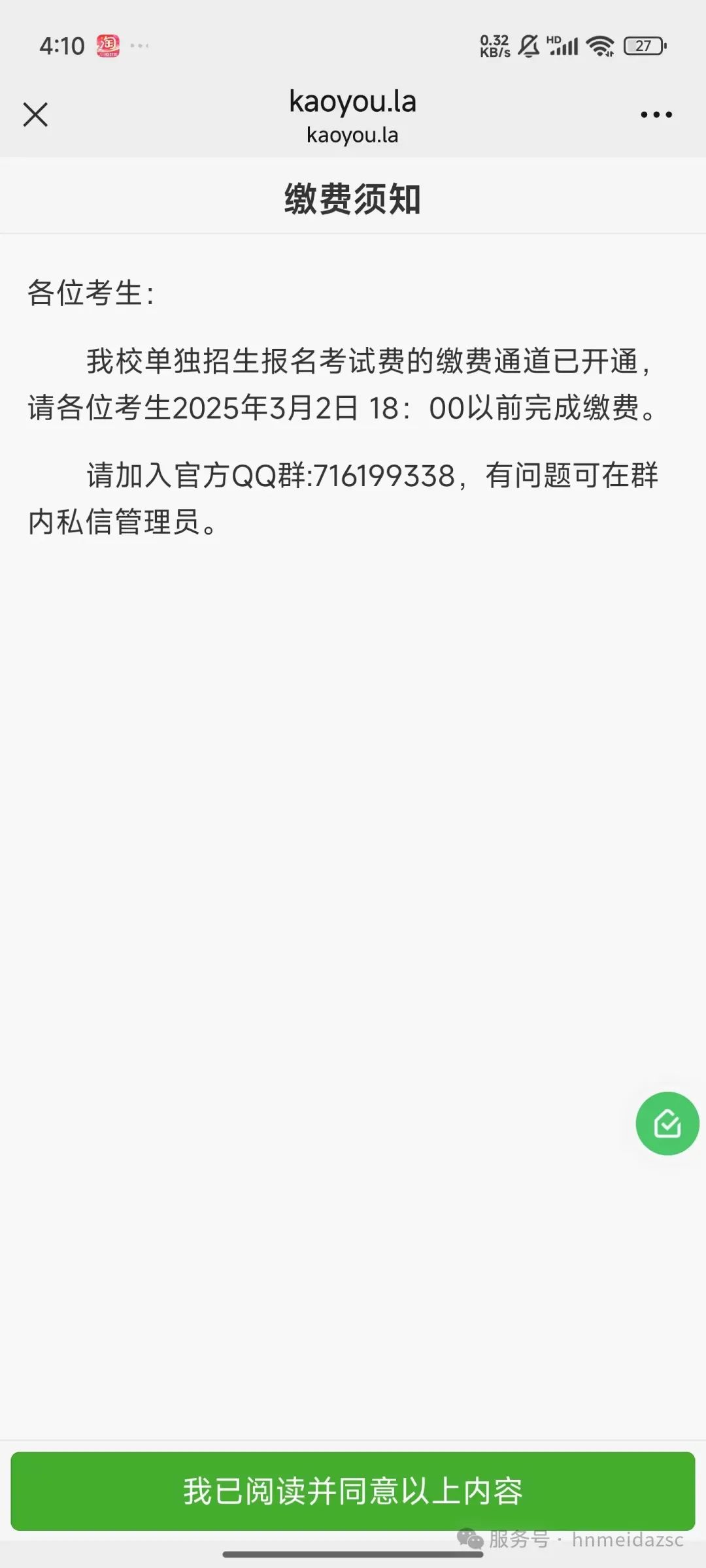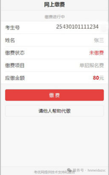 通过公众号菜单“单独招生-单招缴费”进入报名缴费系统