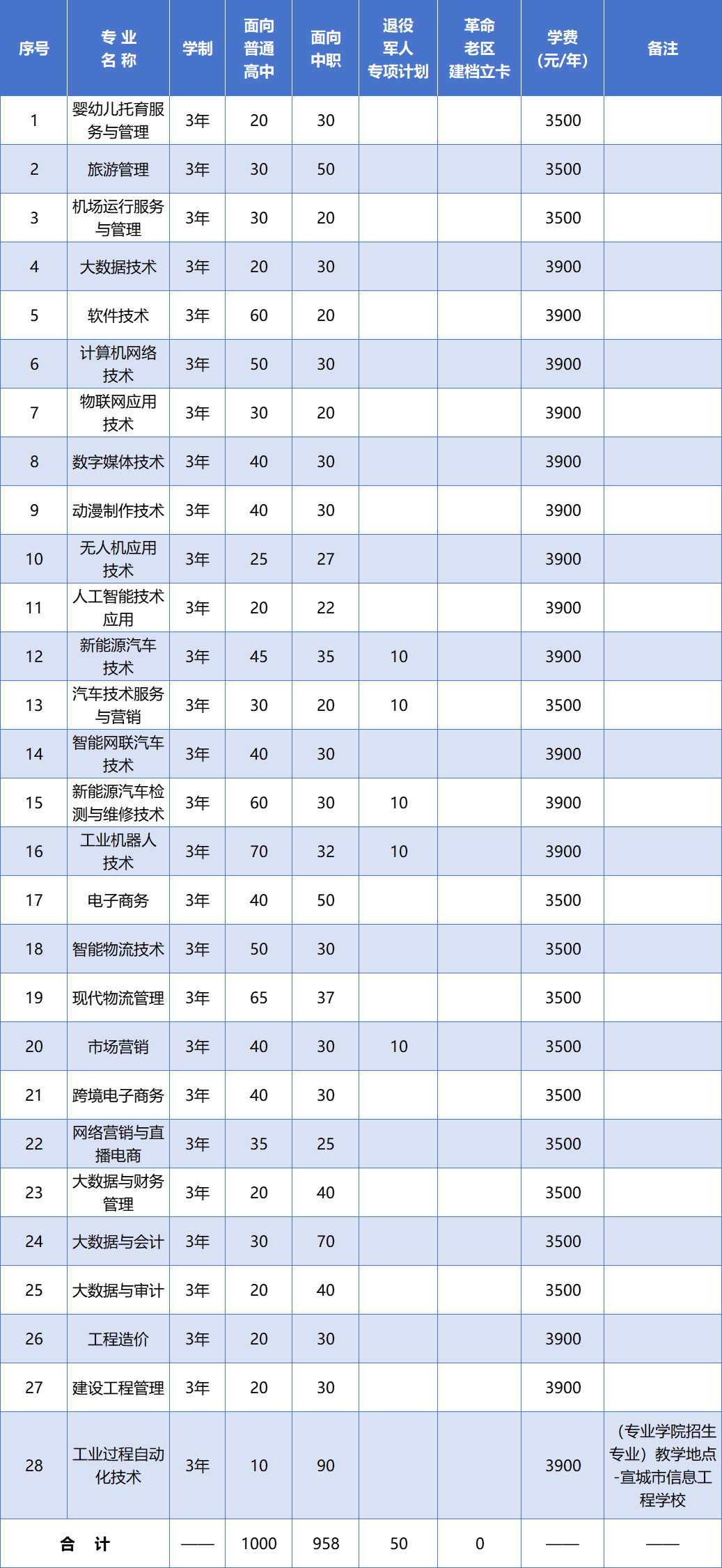 2025年分类考试招生专业及计划