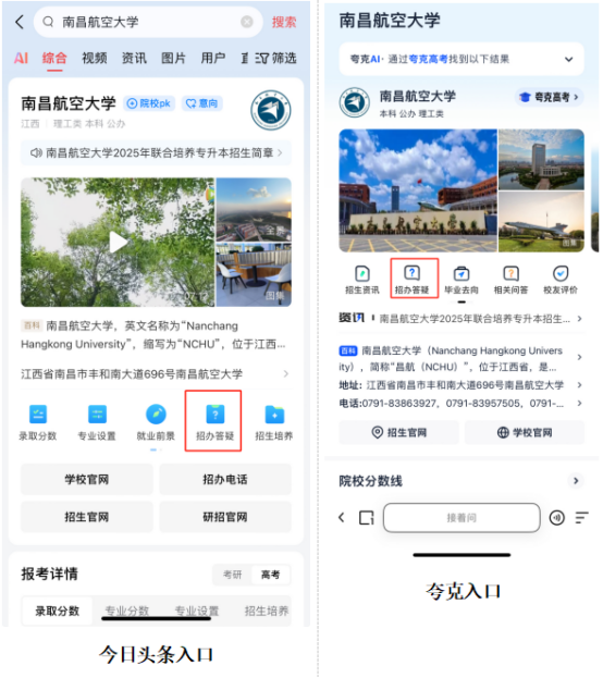 Ø除此之外,各位考生及家长还可以通过掌上高考、百度、今日头条、夸克等各大平台,随时随地向我校进行咨询。