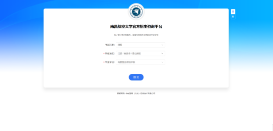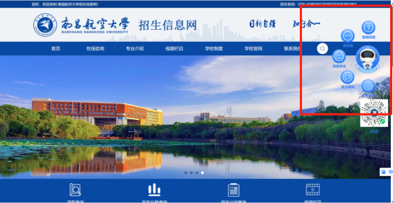 各位学子及家长可通过南昌航空大学招生信息网进行在线咨询。登录南昌航空大学招生官网(网址:https://zsw.nchu.edu.cn/),点击右侧“智能机器人小E”,在登录界面完善基础信息后即可在线咨询或留言。(操作详情见下图)