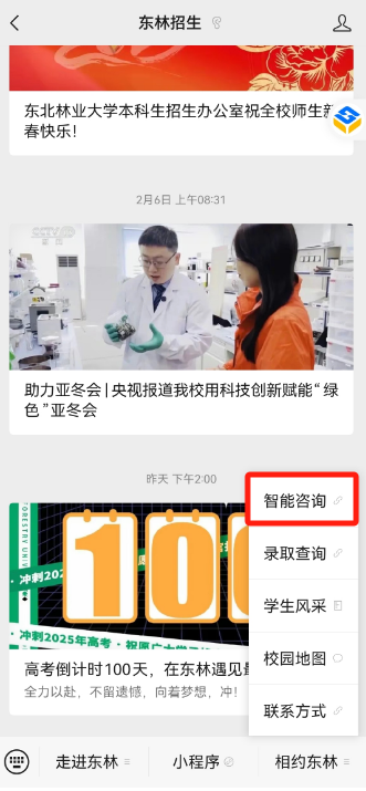 关注【东林招生】微信公众号,点击底栏“智能咨询”即可在线咨询。