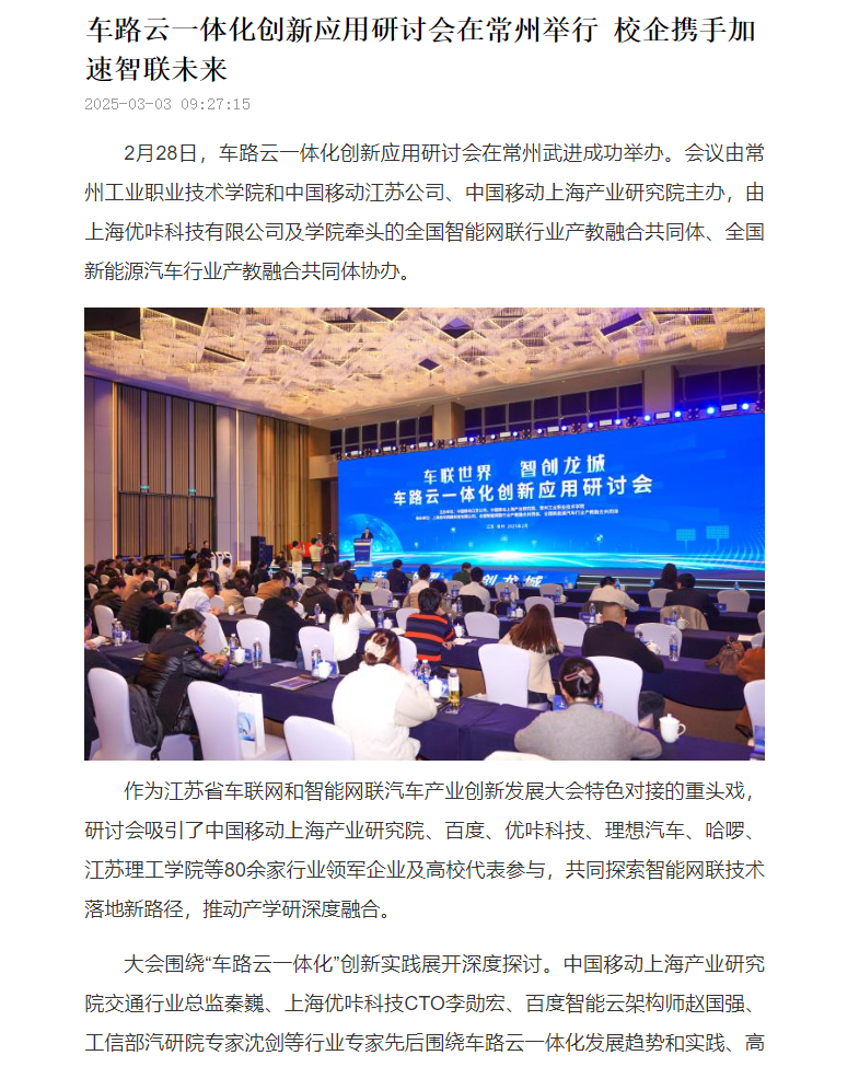 新江苏:车路云一体化创新应用研讨会在常州举行 校企携手加速智联未来