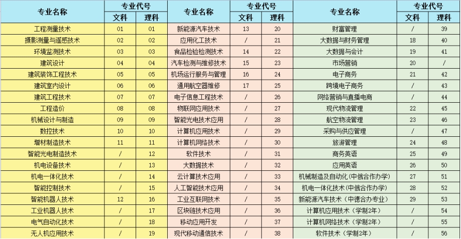 2022年普通高招志愿填报专业代号对照表 院校代码:6262