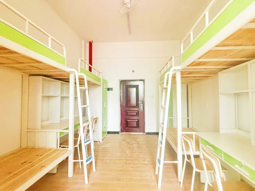 设备:配有标准的书柜和衣柜,有多层收纳空间,配有独立卫浴、阳台、空调、电扇、洗衣机等。