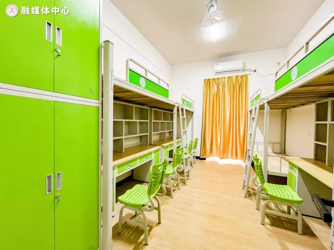 四张书桌像晨光里的四重奏靠窗的床幔与对角的夜灯总在熄灯时分交换温柔的耳语书架错落成四季庭院有人种下多肉盆栽 有人晾晒诗句飞天当灯光在书桌上流淌成河四个独立床位便交汇成暖融融的银河泡泡