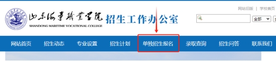 1. 手机/电脑浏览器搜索山东海事职业学院官网→“招生就业”专栏→“招生信息”→“单独招生报名”专栏→进入2025年单招综评考试系统,或直接点击网址(https://danzhao.sdm.net.cn:8008/)登录山东海事职业学院2025年单招综评考试系统。