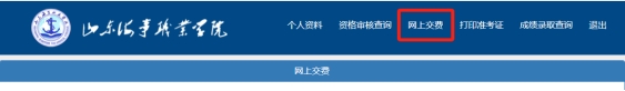2. 输入考生信息(账号:考生身份证号,密码:默认为身份证号后6位),登录系统。核实考生报名信息无误后,点击界面上方“网上交费”选项。