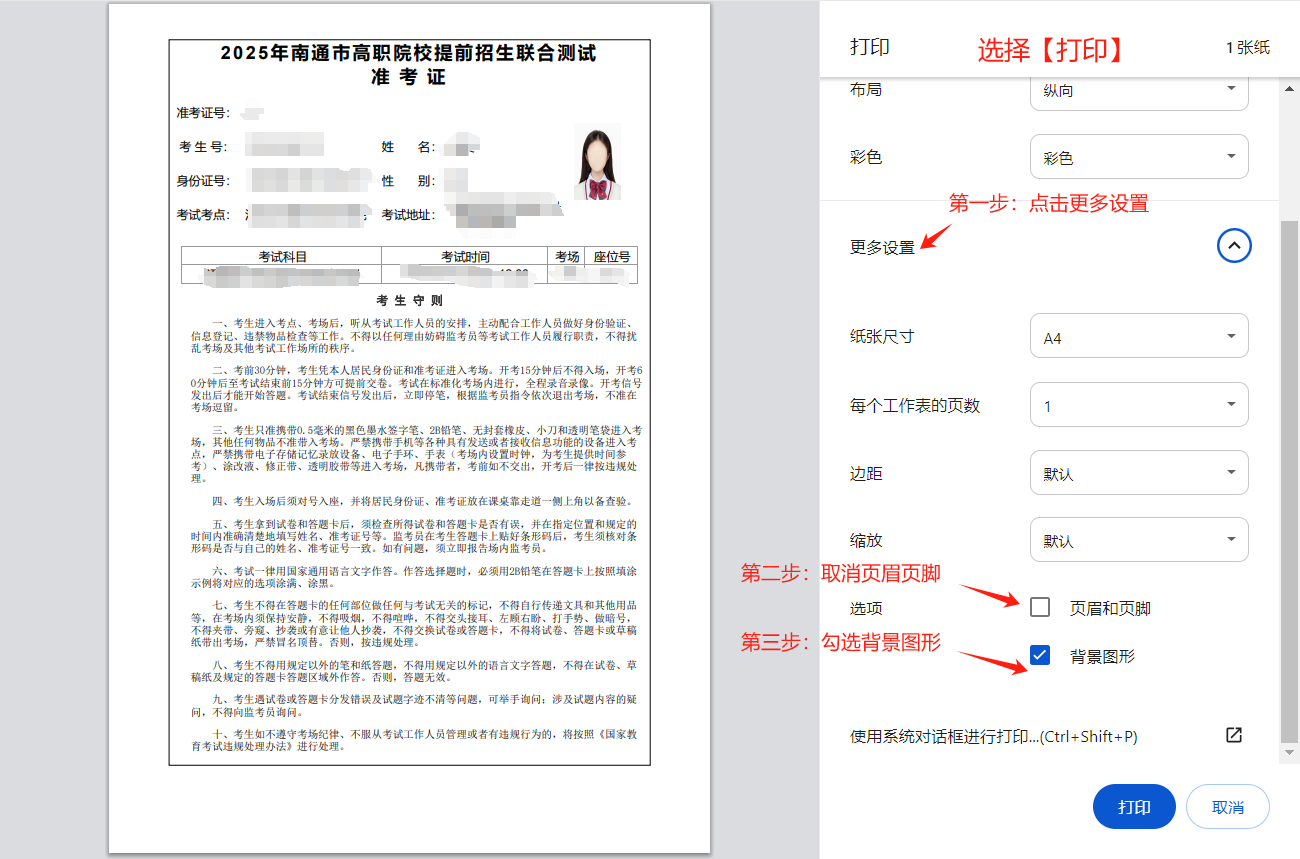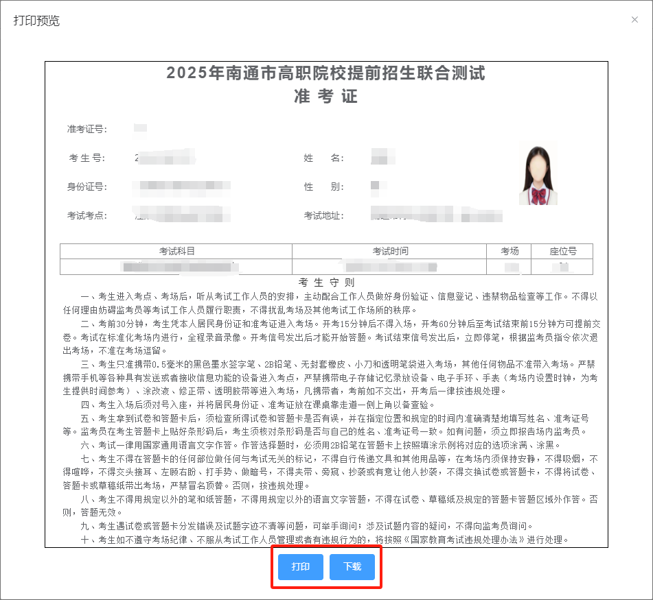 点击【打印准考证】-【打印准考证】,点击【打印】或【下载】pdf自行打印。