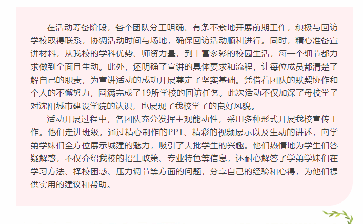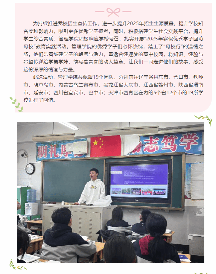 回访母校|管理学院开展“回访母校,筑梦城建”宣传活动