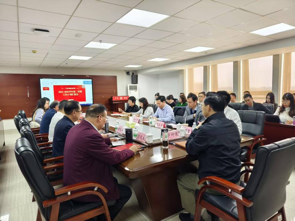 3月10日下午,广州华商职业学院在广州校区行政楼715会议室召开了2024-2025学年第二学期工作计划汇报会。此次会议为明确新学期的工作方向与目标,确保学校各项工作有序、高效推进奠定坚实的基础。学校党政领导班子成员及全体中层干部共同参会,会议由常务副校长袁国繁主持。