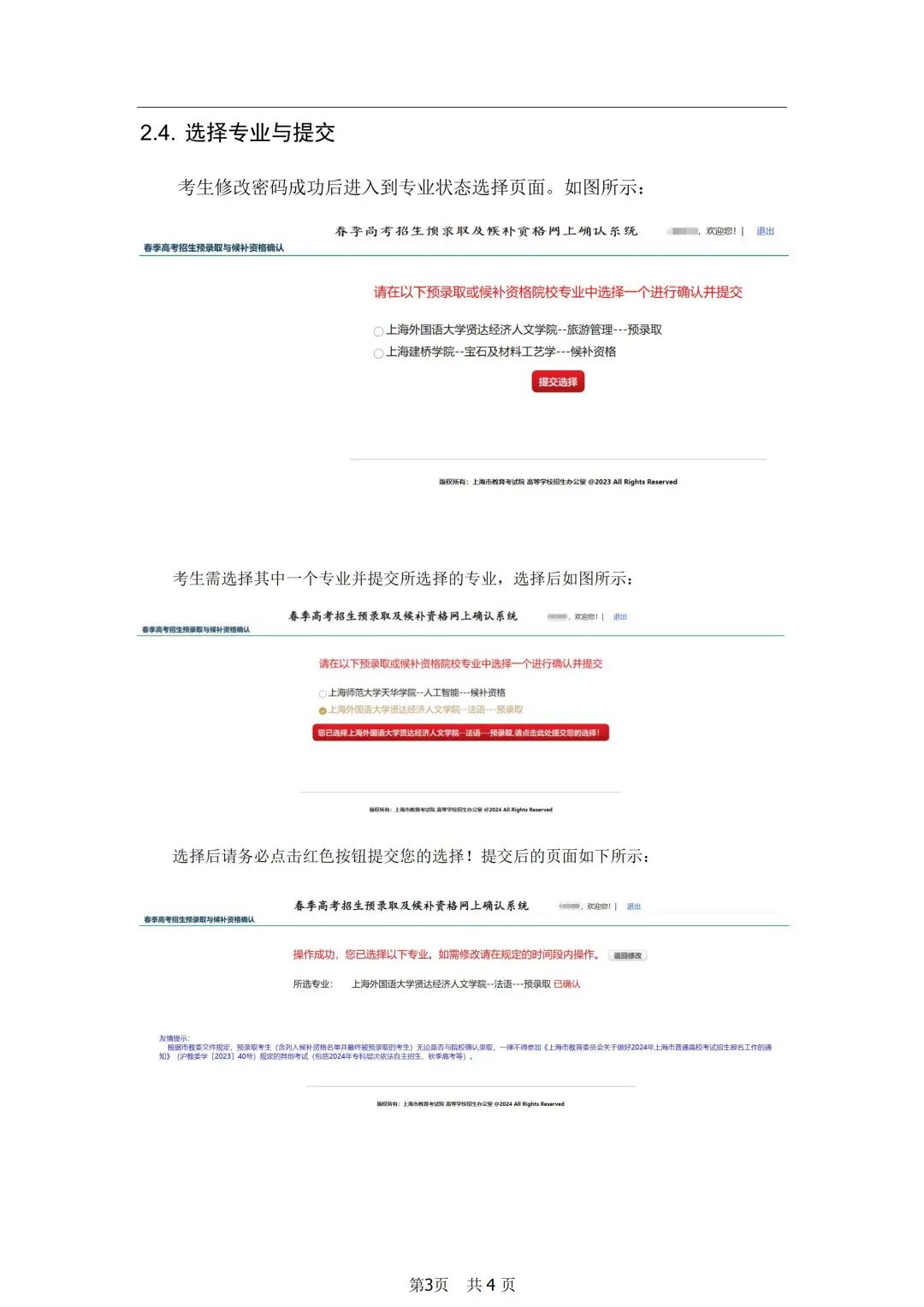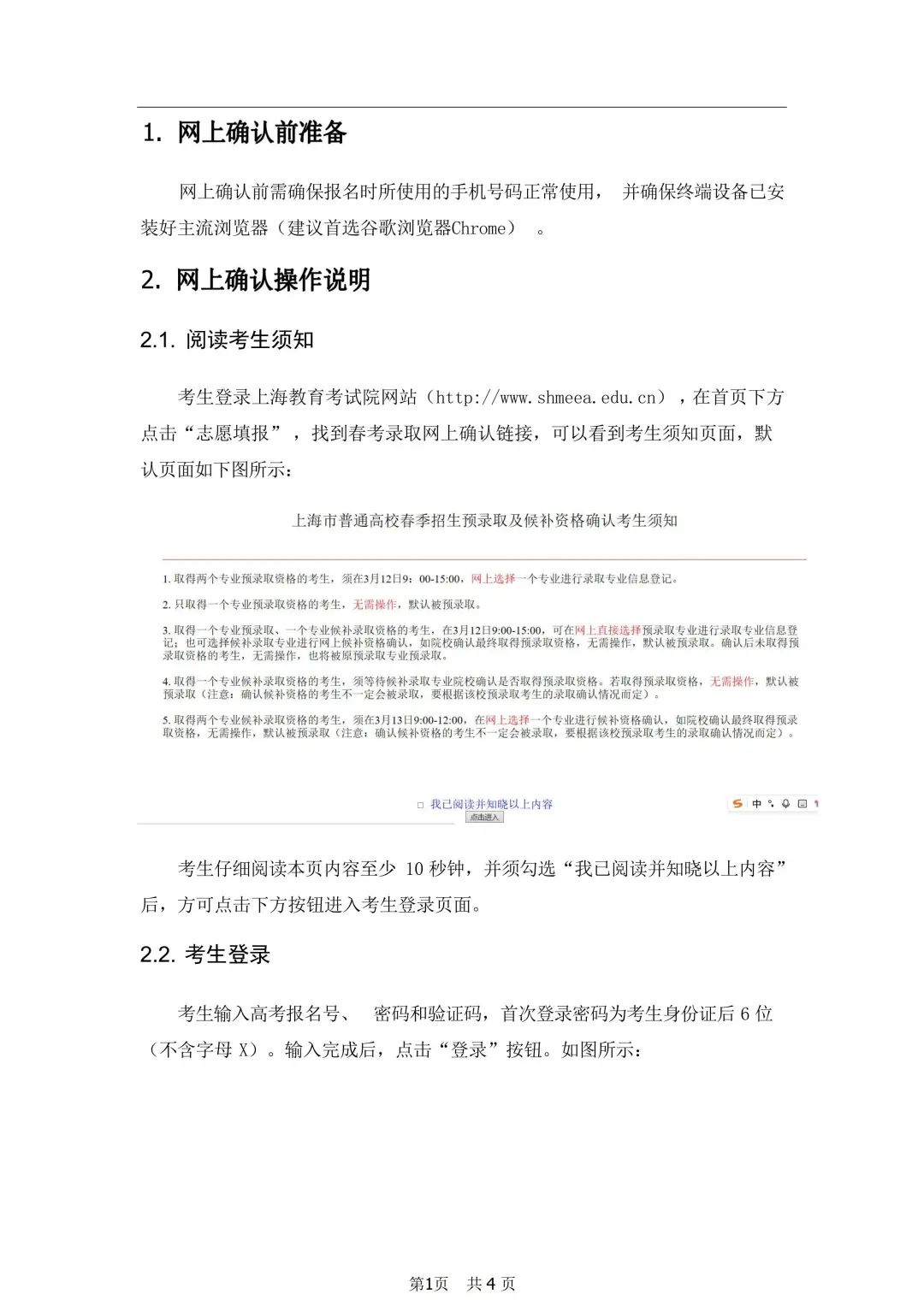 2.打开网上确认系统后,根据系统内“上海市普通高校春季考试招生预录取与候补录取资格网上确认系统操作手册”具体指导步骤,进行网上确认。