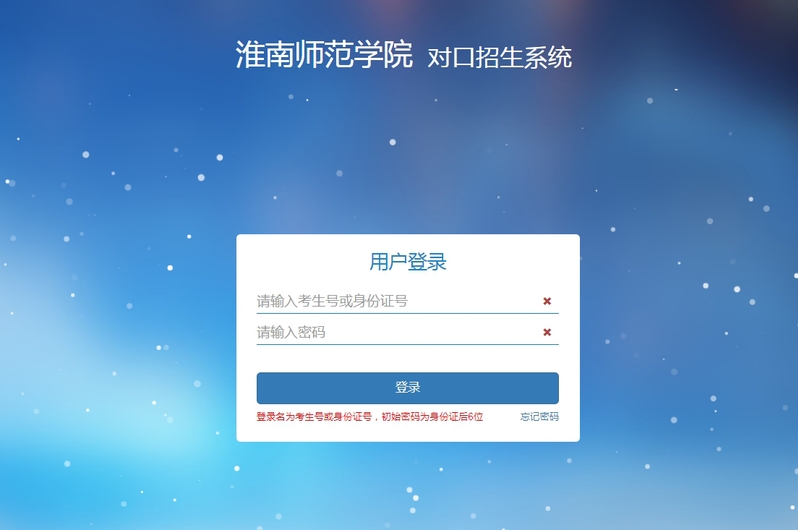 账号为考生号,初始密码为身份证号后6位(含‘X’的为大写)。首次登录后,需修改密码方能进行后续操作。如若忘记密码,可点登录界面忘记密码找回密码。