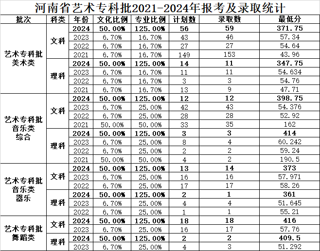 艺术专科批往年录取情况:
