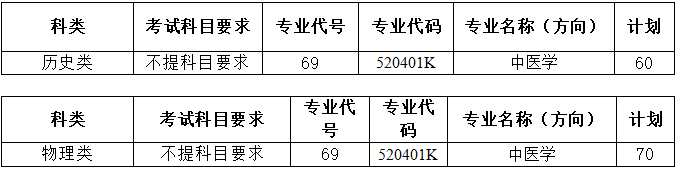 专科提前批医学类专业代号及计划数: