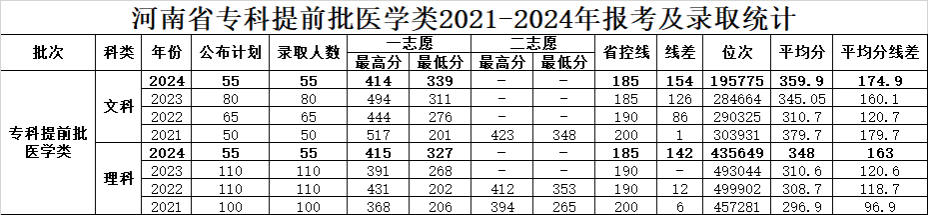专科提前批医学类往年录取情况: