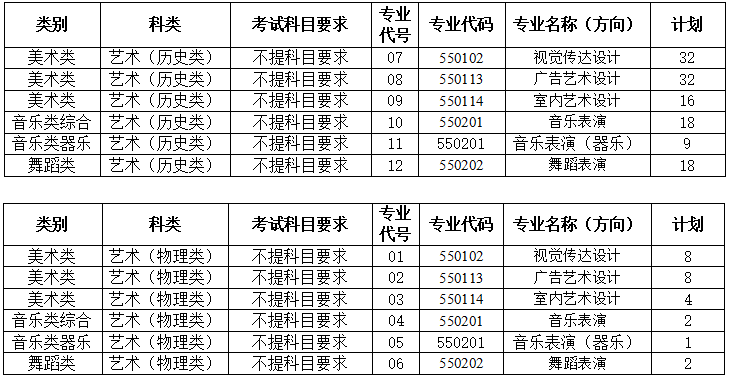 艺术专科批专业代号及计划数: