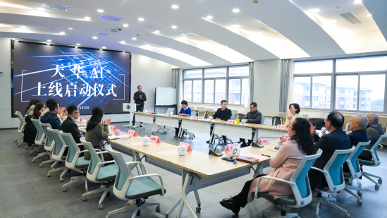 上线仪式在明华楼五楼远程教学中心举行。董事长邹荣祥、党委书记高建华、总校监叶才福、常务副校长龚春蕾共同启动“天华AI”上线,副校长徐子卿、凌旭峰分别介绍天华AI、科研AI建设情况。学校党政领导、二级学院院长和相关职能处室负责人参加仪式,校级助理、党办主任、宣传部长齐砚奎主持。