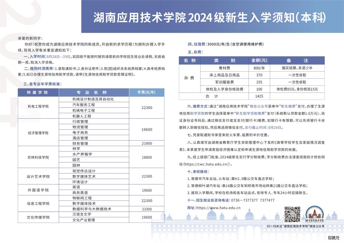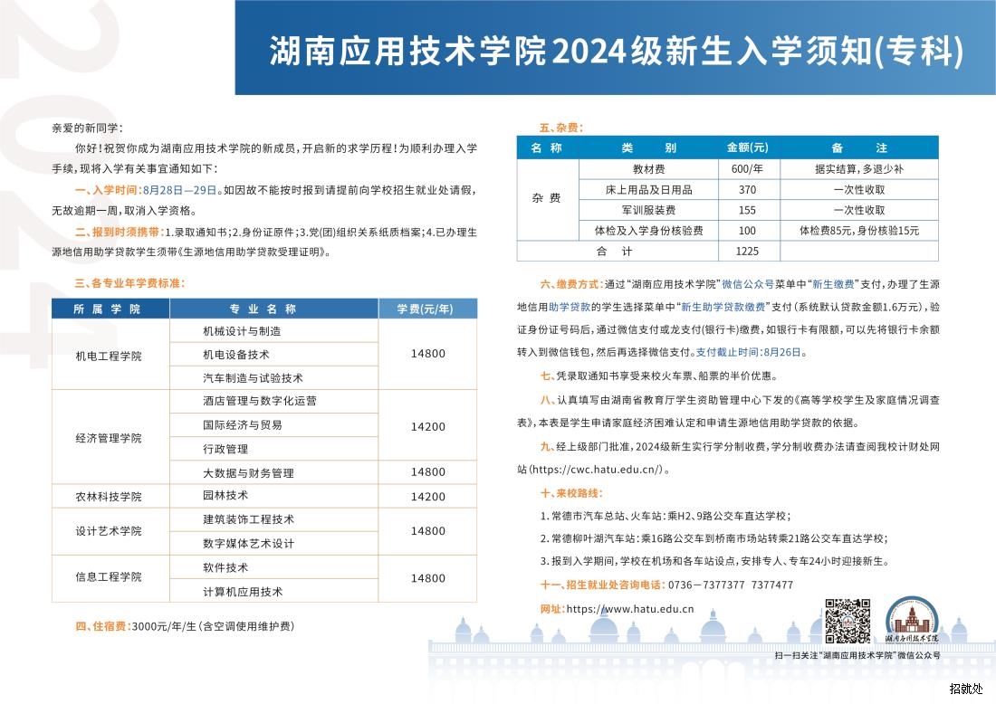 湖南应用技术学院2024年入学须知