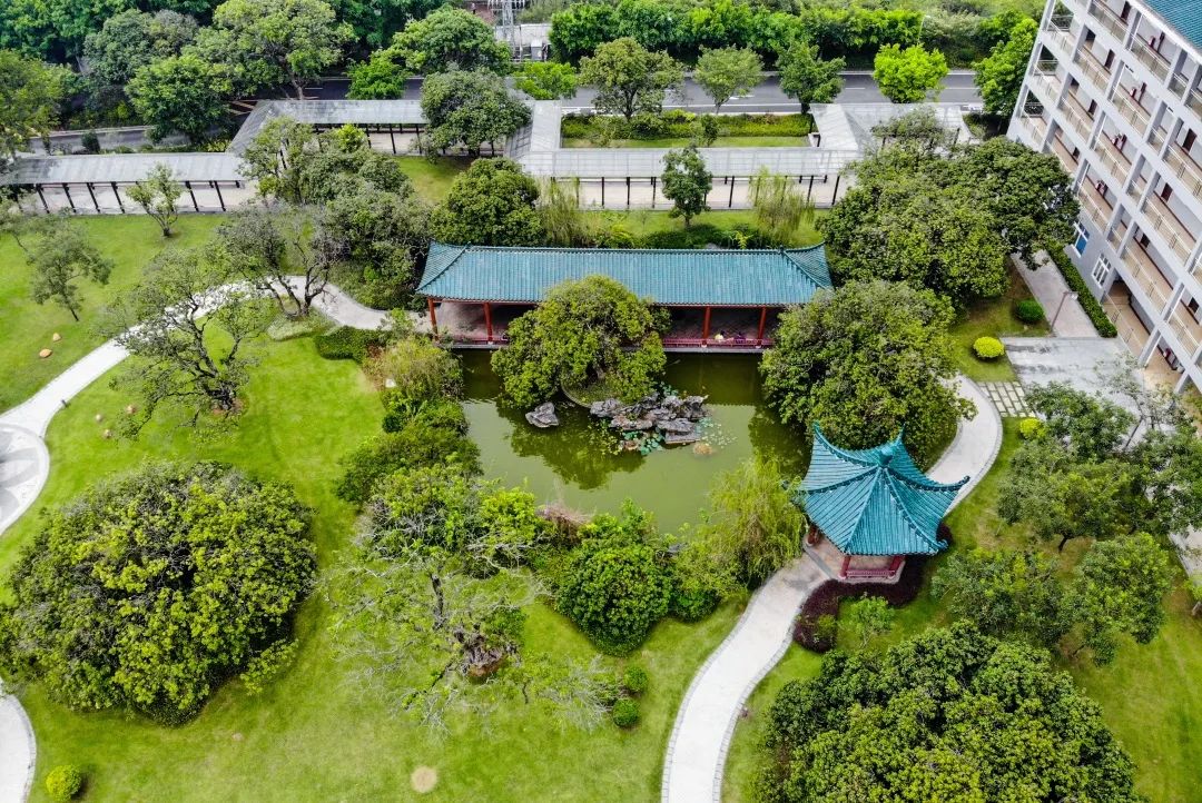 白墙绿瓦,碧海蓝天,岭南园林式的校园有着令人羡慕的高颜值。常年绿树成荫,四季繁花飘香。亭台楼榭错落有致,湖光山色处处皆景,在这里学习生活是一种享受!