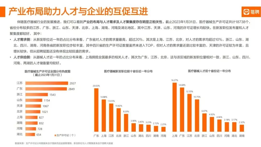 据《制造业人才发展规划指南》预测,我国生物医药及高性能医疗器械人才,到2025年人才需求总量为100万,人才缺口高达45万。从人才需求侧来看,广东省对人才的需求量最高,超过20%,其次是上海、江苏、北京,对人才的需求均超过10%。