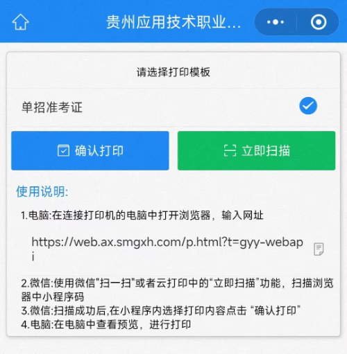 第四步:扫描成功后,在小程序内选择打印内容,点击【确认打印】。