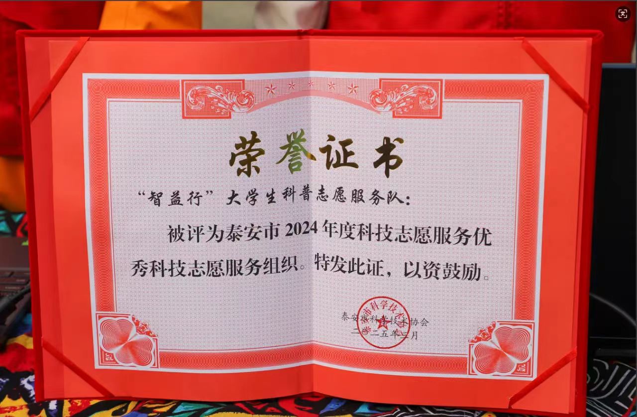 3月12日,泰安市科协六届委员会第八次会议召开,泰山科技学院科学技术协会被评为泰安市2024年高校科协工作先进单位,泰山科技学院科学技术协会秘书长马栋获评2024年度高校科协工作先进个人,泰山科技学院“智益行”大学生科普志愿服务队获评泰安市2024年科技志愿服务优秀组织。